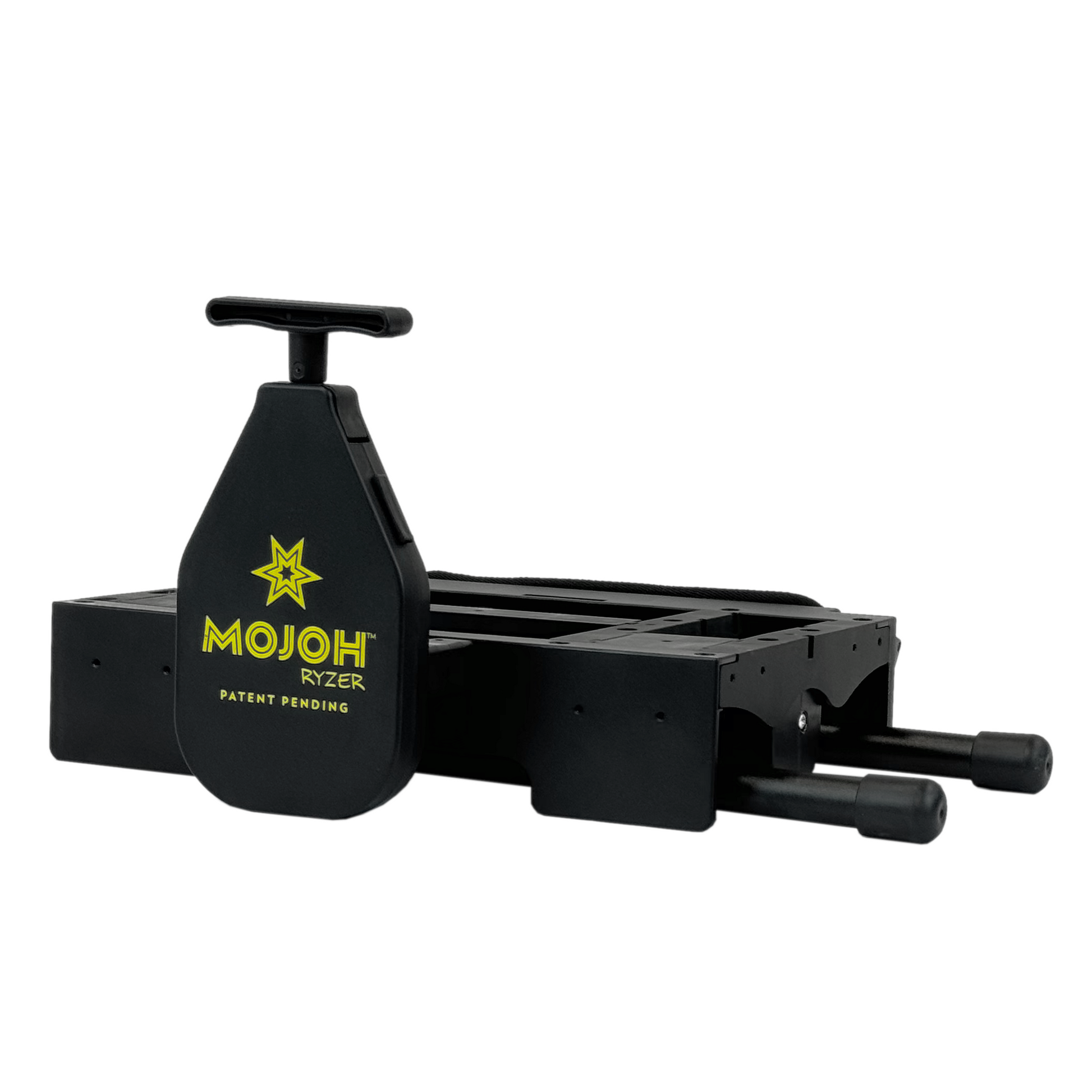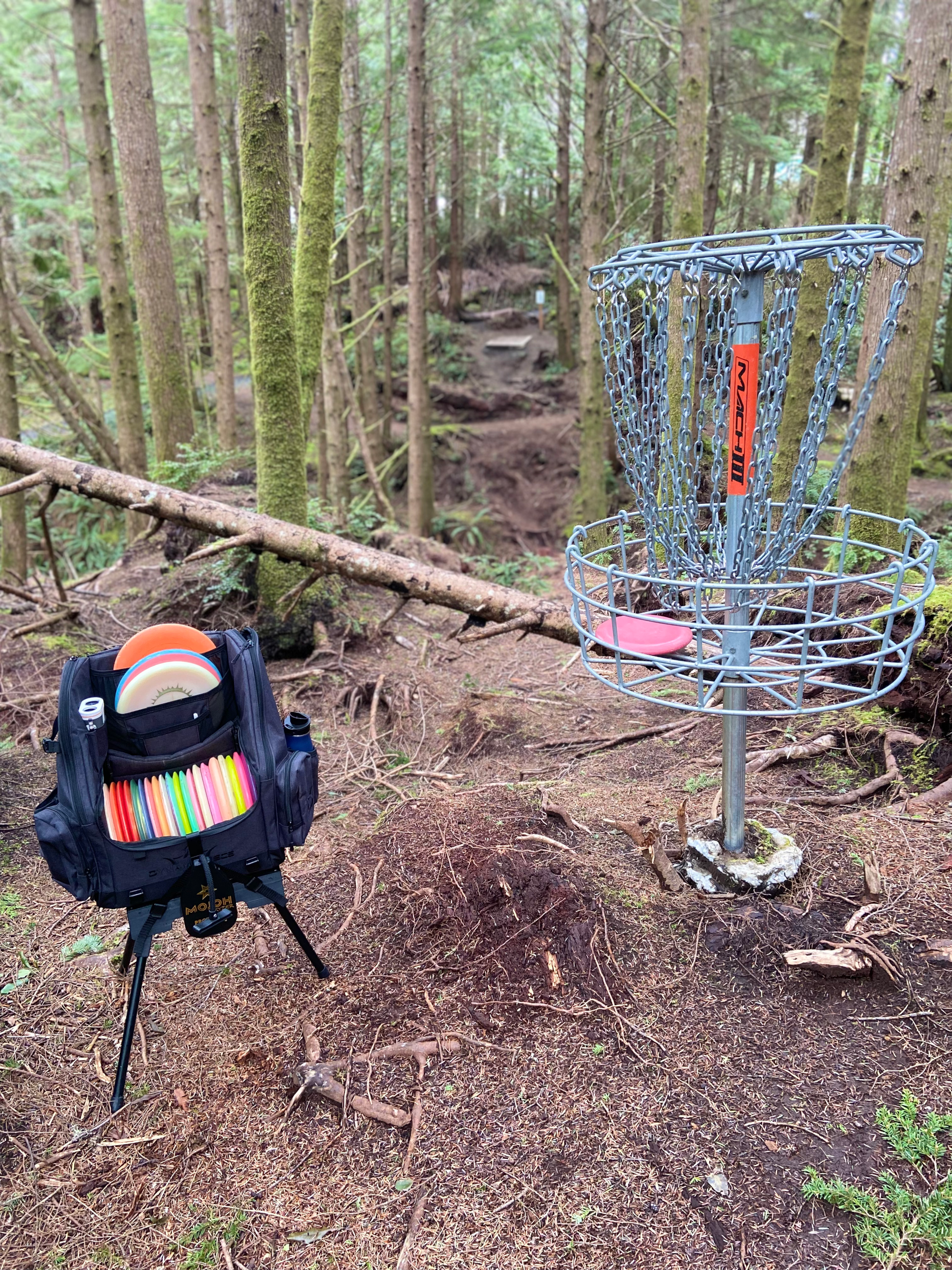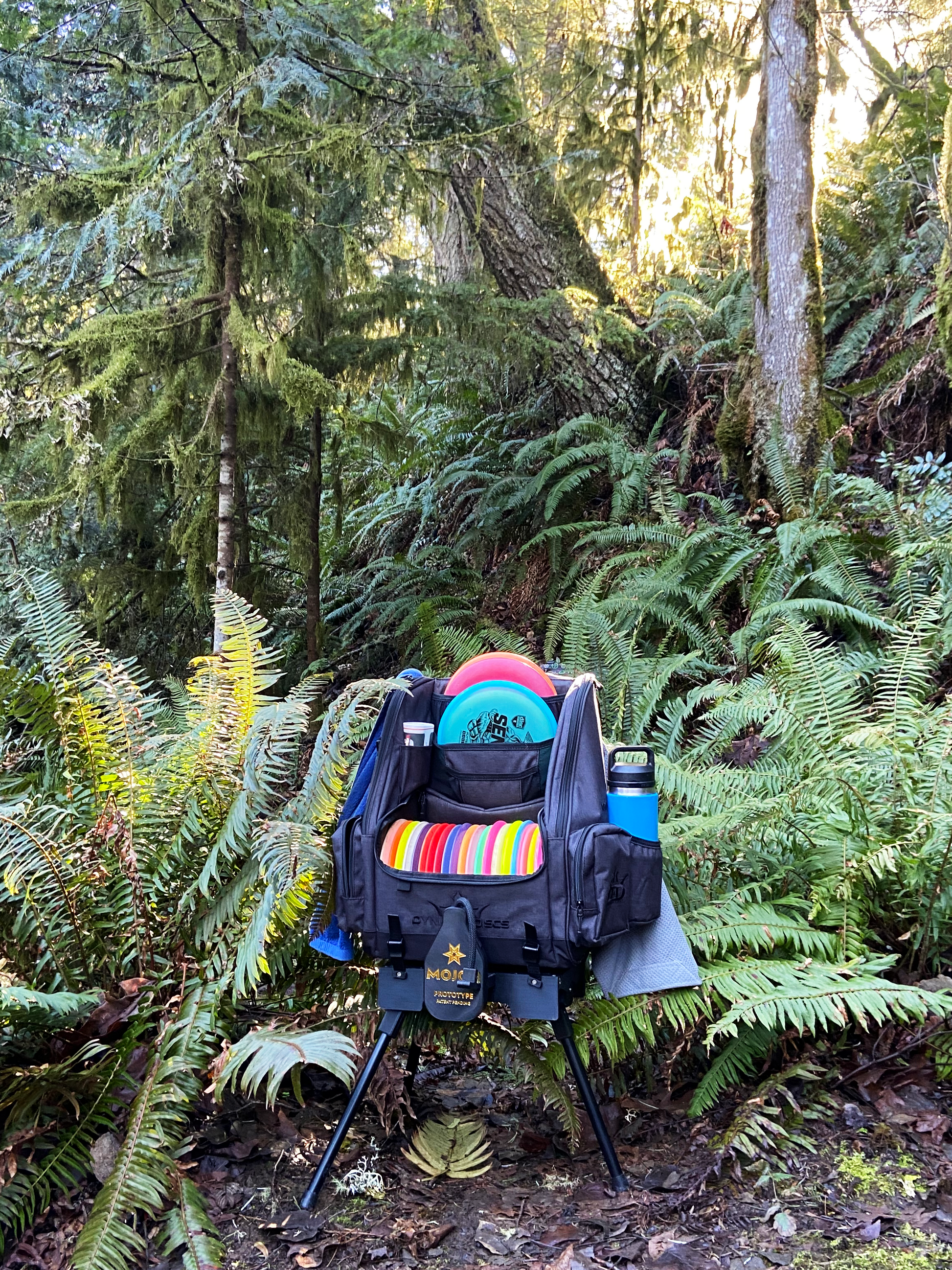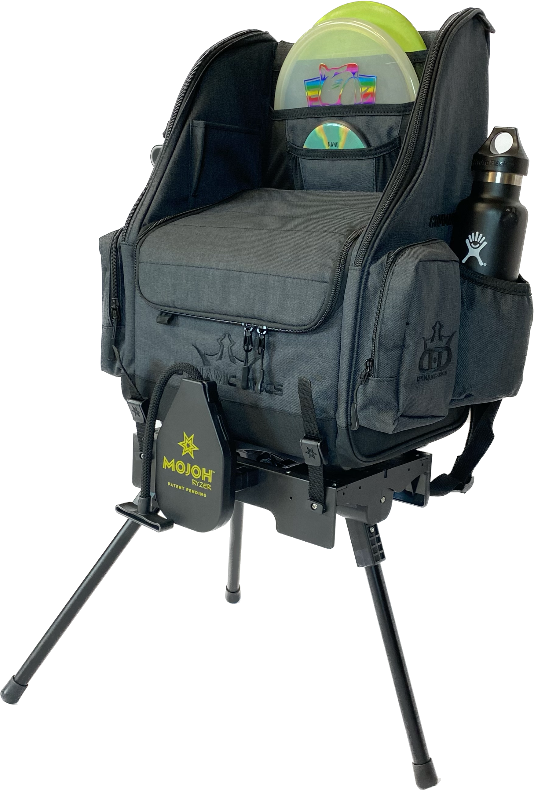The Ryzer is a collapsible bag stand that can attach to most disc golf bags. It elevates your bag off the ground, making it easier to access your gear and keeping it clean and dry. Not to mention it significantly reduces strain on your body.